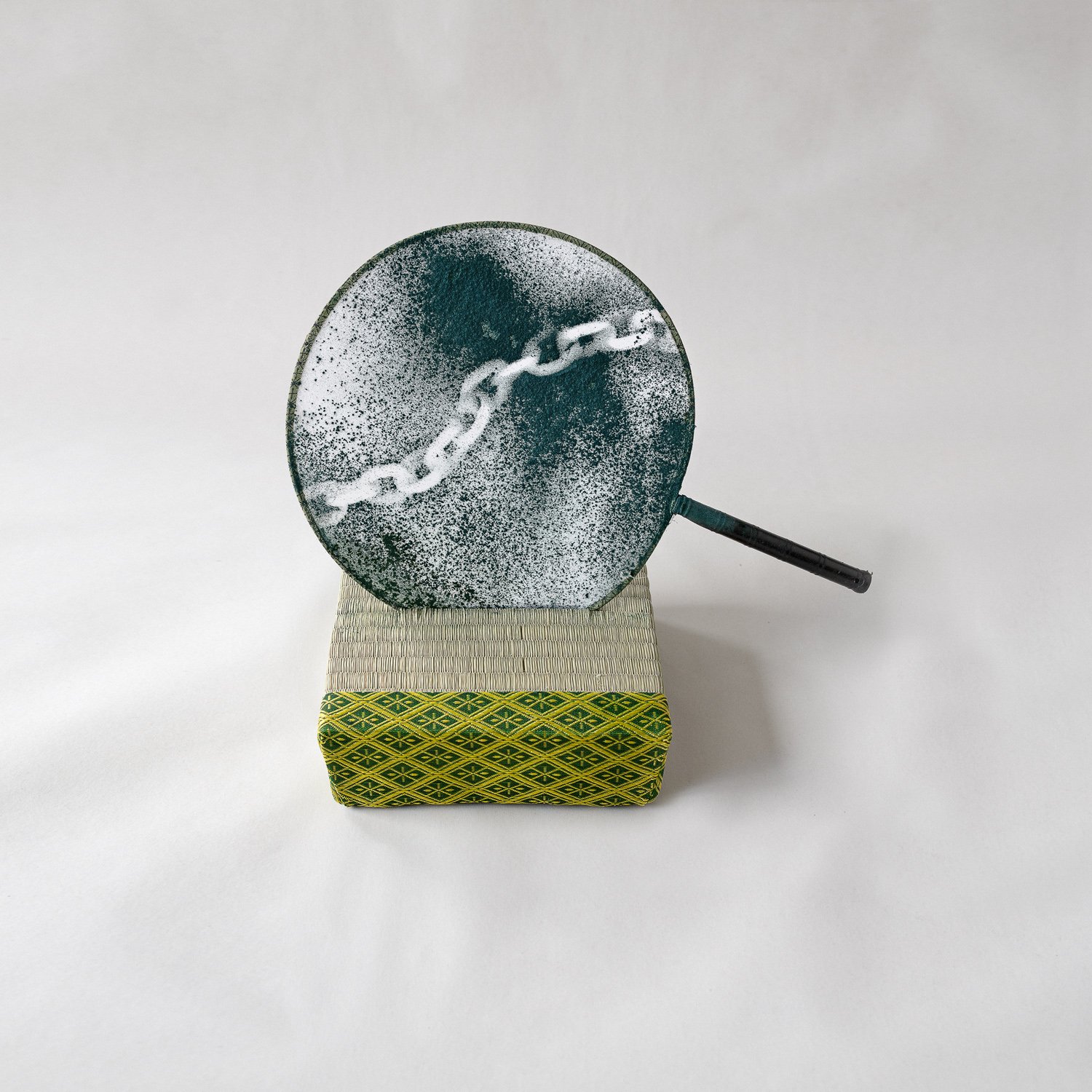 ”Den samme drøm om stilhed sidder i Rakels hukommelse hver morgen. Lyse toner fylder morgenrummet ovenpå den summende lyd af Rakels vibrerende telefon. Luften er tyk, hvidlig. Det føles som om ilten sidder fast og må trækkes ud. Lungerne må presse den. Som om et nyt atmosfærisk lag er steget op af jorden. Luftens tykkelse er kombineret med en tørhed som sidder under huden, føles som om den kommer fra knoglerne. Det er blevet sådan gradvist i takt med at Rakel tiltagende bevæger sig i mere sporadiske tempi. For hende er dagene gået fra barndom til et spring af stillestående gnister til denne begyndende fortykkelse af luften. Rakel åbner munden i et forsøg på at hjælpe vejrtrækningen på vej. Den bliver tiltagende besværet, mister sin rytme. Som om vi alle skal kvæles på et tidspunkt, tænker hun. Rakel står ud af sengen, langsomt. Telefonens summen bliver ved, den kan ignoreres lidt endnu. En anden summen, lyden af en flyvemaskine, blander sig. Den toner hurtigt ind, så ud. Rakel ruller sin seng sammen til en cylinder og stiller den i hjørnet. Hun går en runde i rummet som er indrettet med et underlag af strå. Rummet har ingen møbler kun et rektangulært felt på gulvet i midten. Dette felt er afgrænset med grønne og gule, mønstrede stofbånd. Skævt placeret i det står en lille hvid tekop. Glinsende, med en mørkegrøn rest af indtørret te i bunden. Som et minde fra en fortid der ikke kan gentages.” – uddrag af Kristian Byskovs tekst til udstillingen.