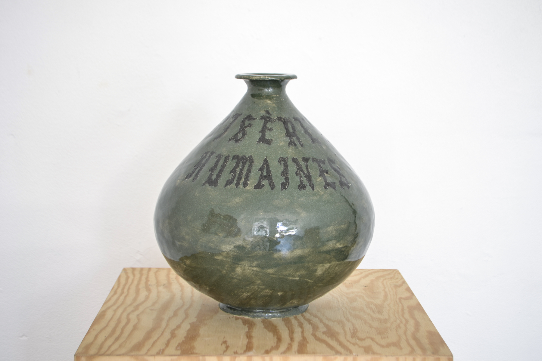 Alle værkerne i udstillingen har lag af poesi og skrift i sig i enten titlerne eller konkret i værket. Som i Ihsan Ihsans keramiske værker, hvor tekst og billeder er vævet ind under keramikkens glatte glasering som en keramisk collage. Noget i hans keramiske værker minder mig om kvaliteten af en notesbog; uddrag af raptekster, et højt skattet familiefoto, arabiske skrifttegn, et brev til en ven. En titel som Call me if you get lost’ minder både om en sangtitel, en kærlighedserklæring eller en indforstået sms. Den spiselige, smukt udførte keramik bærer fortællinger om sorg, tab, hjemve, magi, poesi, penge, kunst-klicheer og re-appropriation.