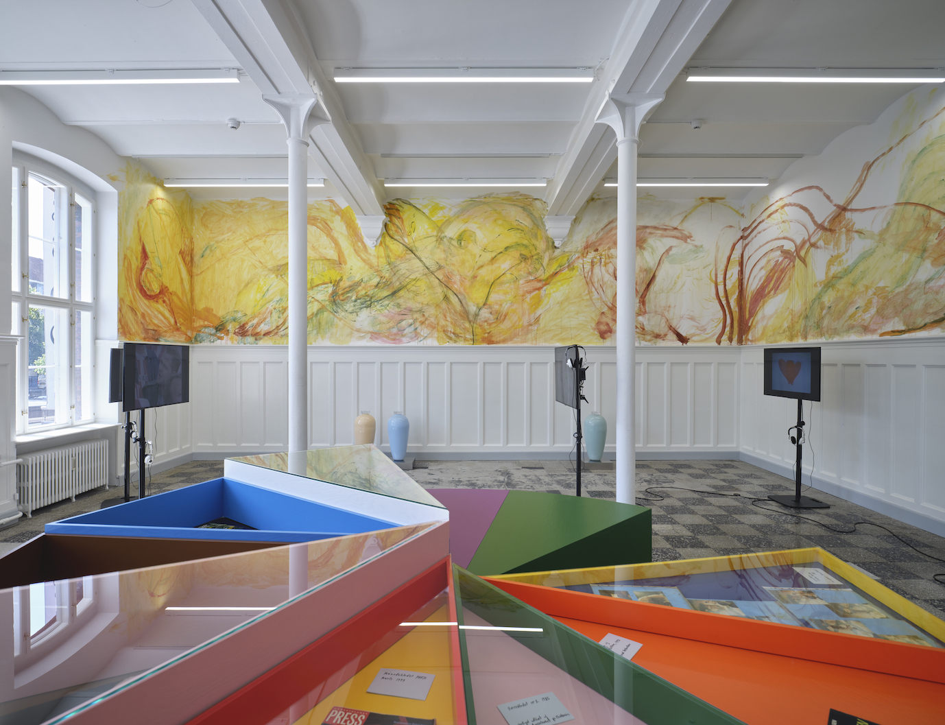 Den danske maler Maria Wæhrens skaber et nyt vægmaleri til udstillingen og en anden væg fyldes af plakater af den kenyansk-canadiske kunstner Brendan Fernandes, som spørger til medikamentet PrEP, der i pilleform fungerer som en forebyggende behandling mod HIV.