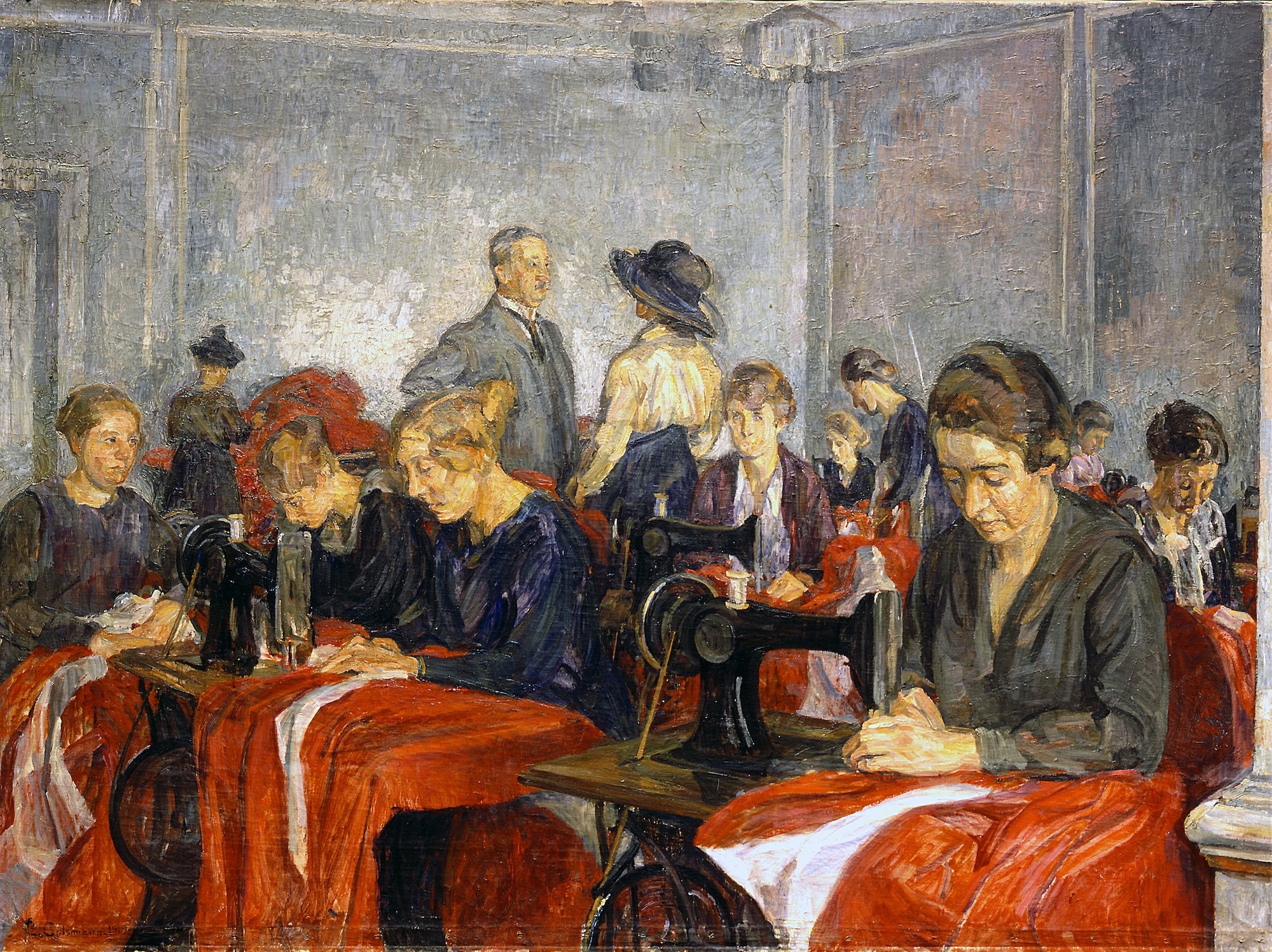 Carla Colsman Mohr, Flagene til Sønderjylland sys på Christiansborg, 1919. Foto: Museum Sønderjylland