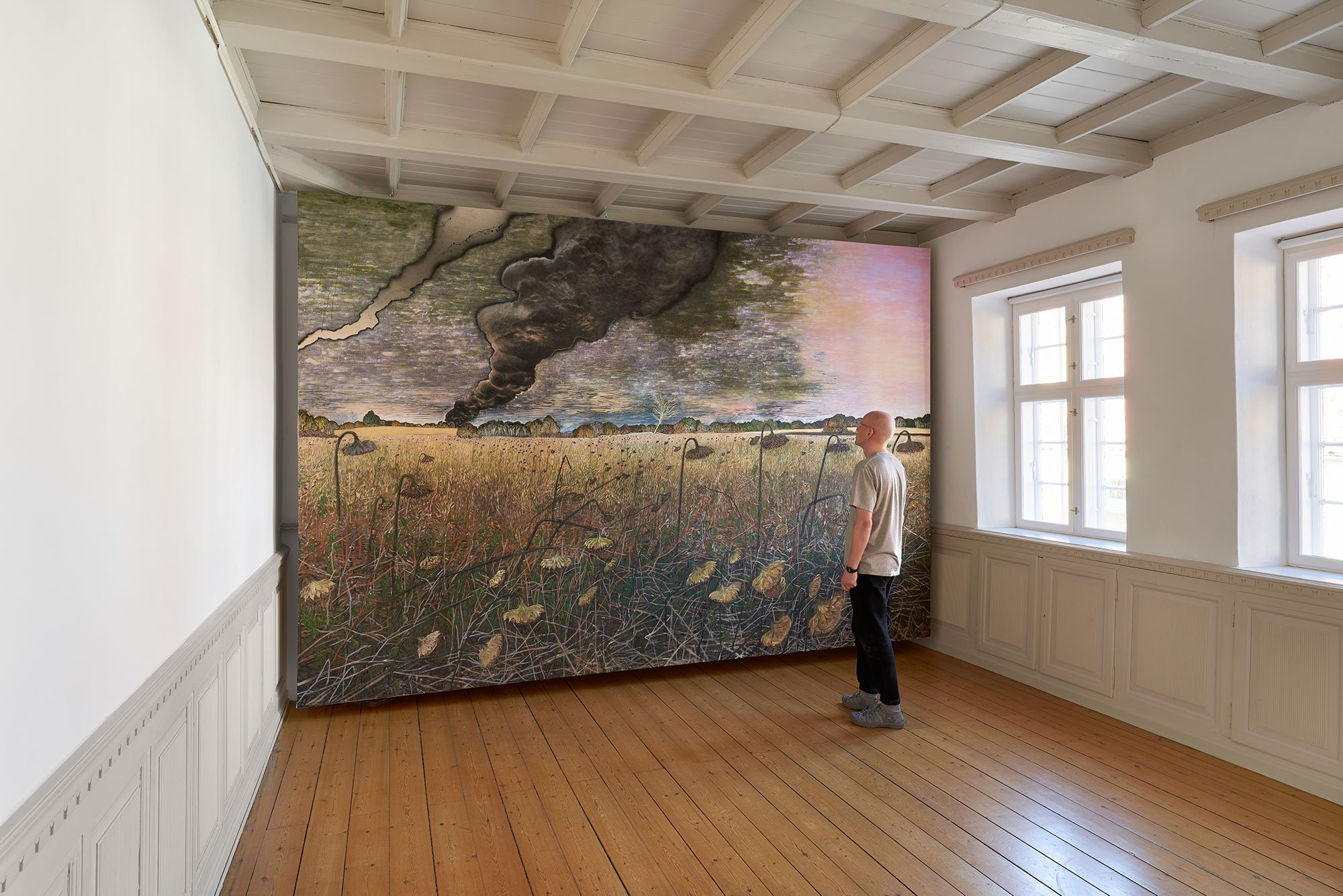 Søren Martinsen, Sonyashnyky (Sunflowers), Akryl og olie på bomuld, 300 x 445 cm, 2024. Foto: Brian Kure