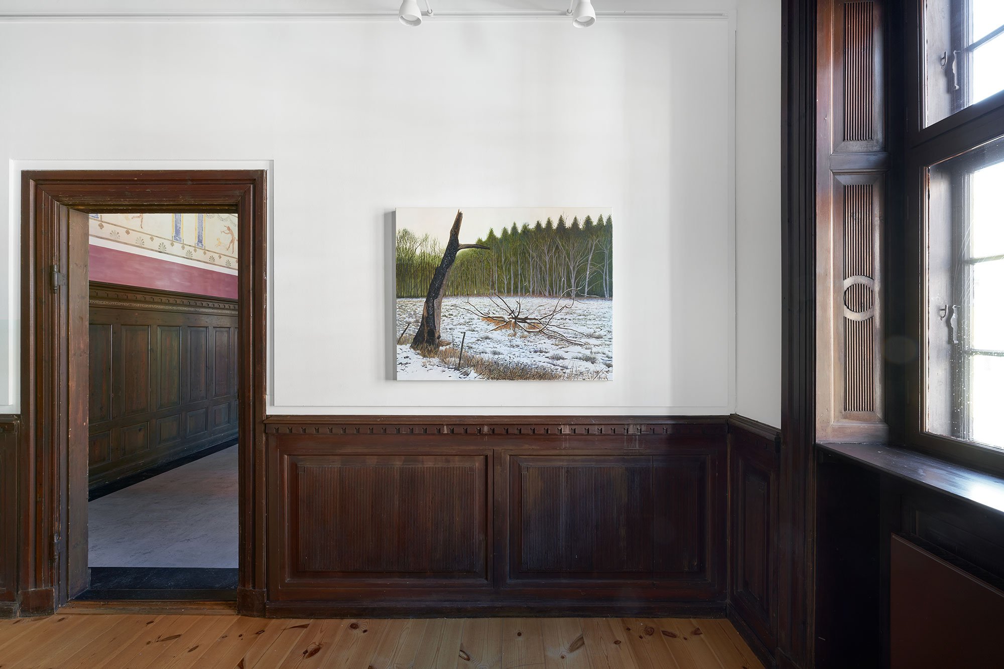 Søren Martinsen, Forkullet træ ved Sviatohirsk, olie på lærred, 110 x 80 cm, 2024. Foto: Brian Kure
