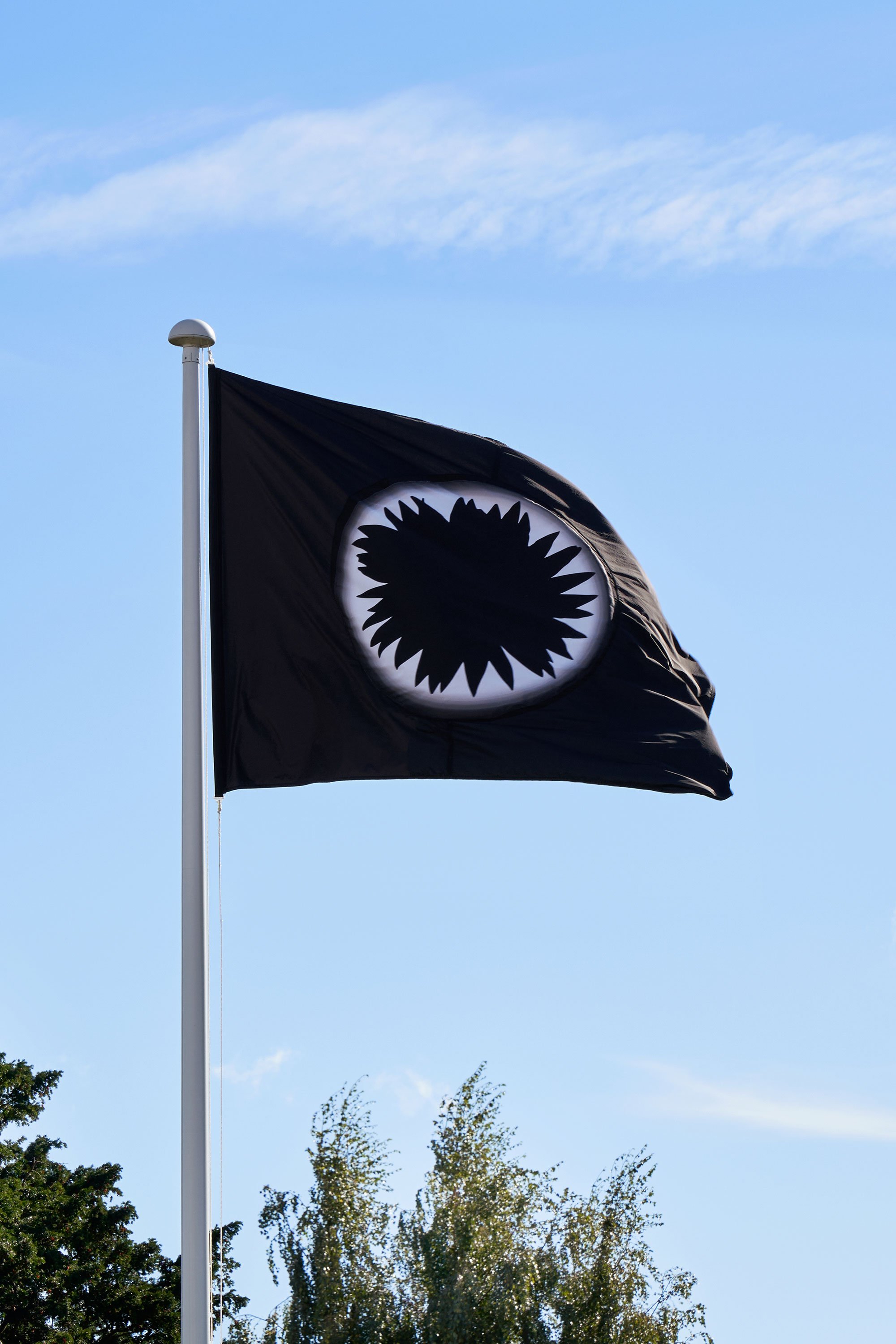 Søren Martinsen, Solsikkeformørkelse, flagstof, 180 x 230 cm, 2024. Foto: Brian Kure
