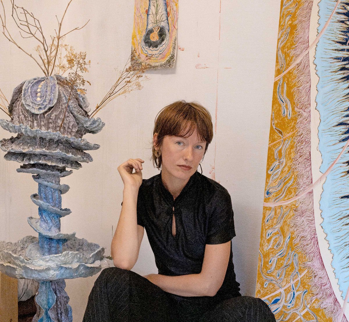 Cecilia Fiona arbejder på tværs af skulptur, maleri, kostume og performance for at skabe et sammenvævet økosystem, hvor hvert medie udspringer af og forgrener sig i de andre.