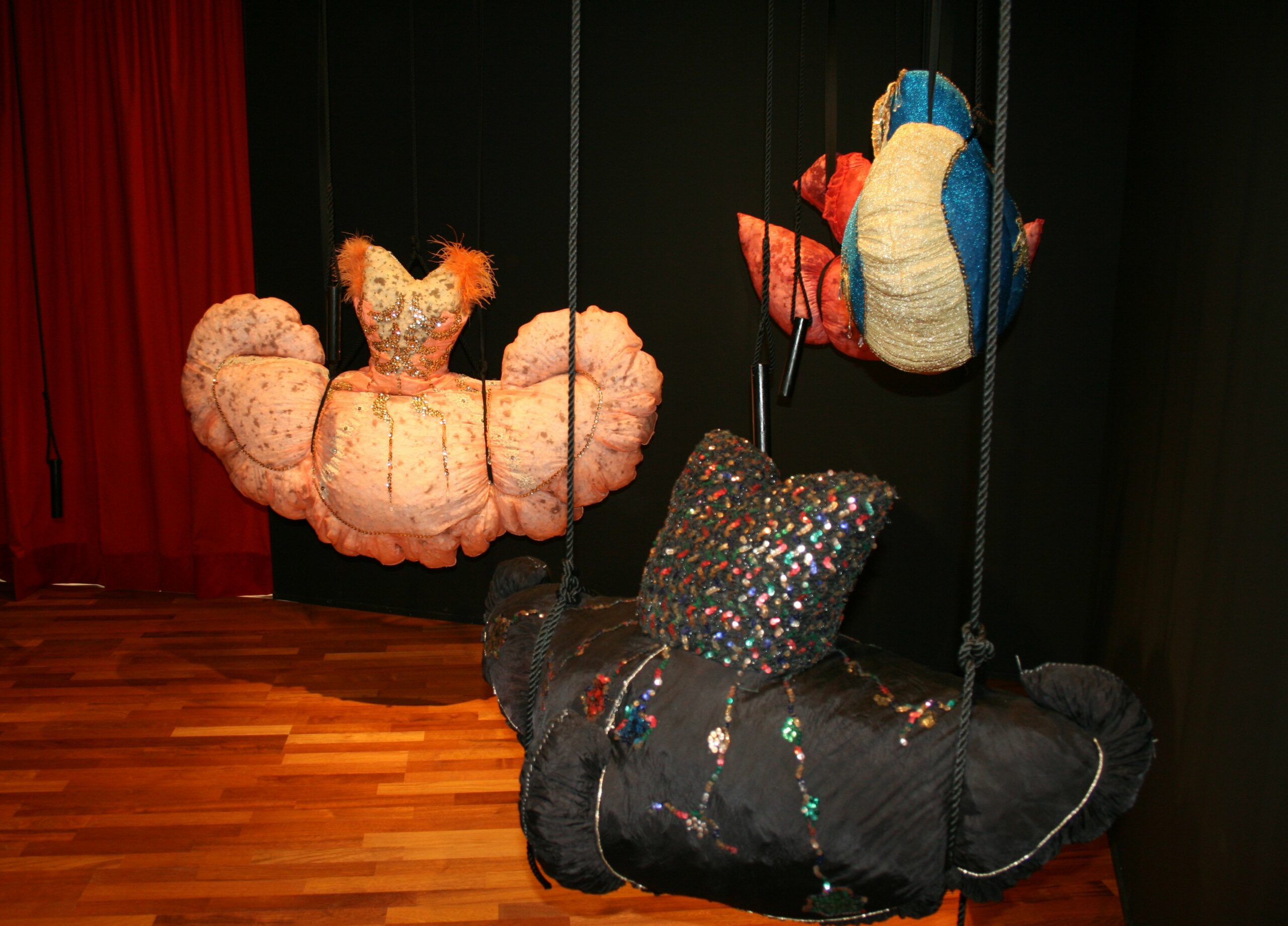 Nogle af kjolerne er hængt op i elastikker og med snoretræk, så de kan bevæge sig som en marionetdukke. Man kan danse med dem til musikken, som spiller i baggrunden. Og marionetdukken er et sigende billede på den kritik Charlotte Bergmann Johansen retter mod danseverdenen.