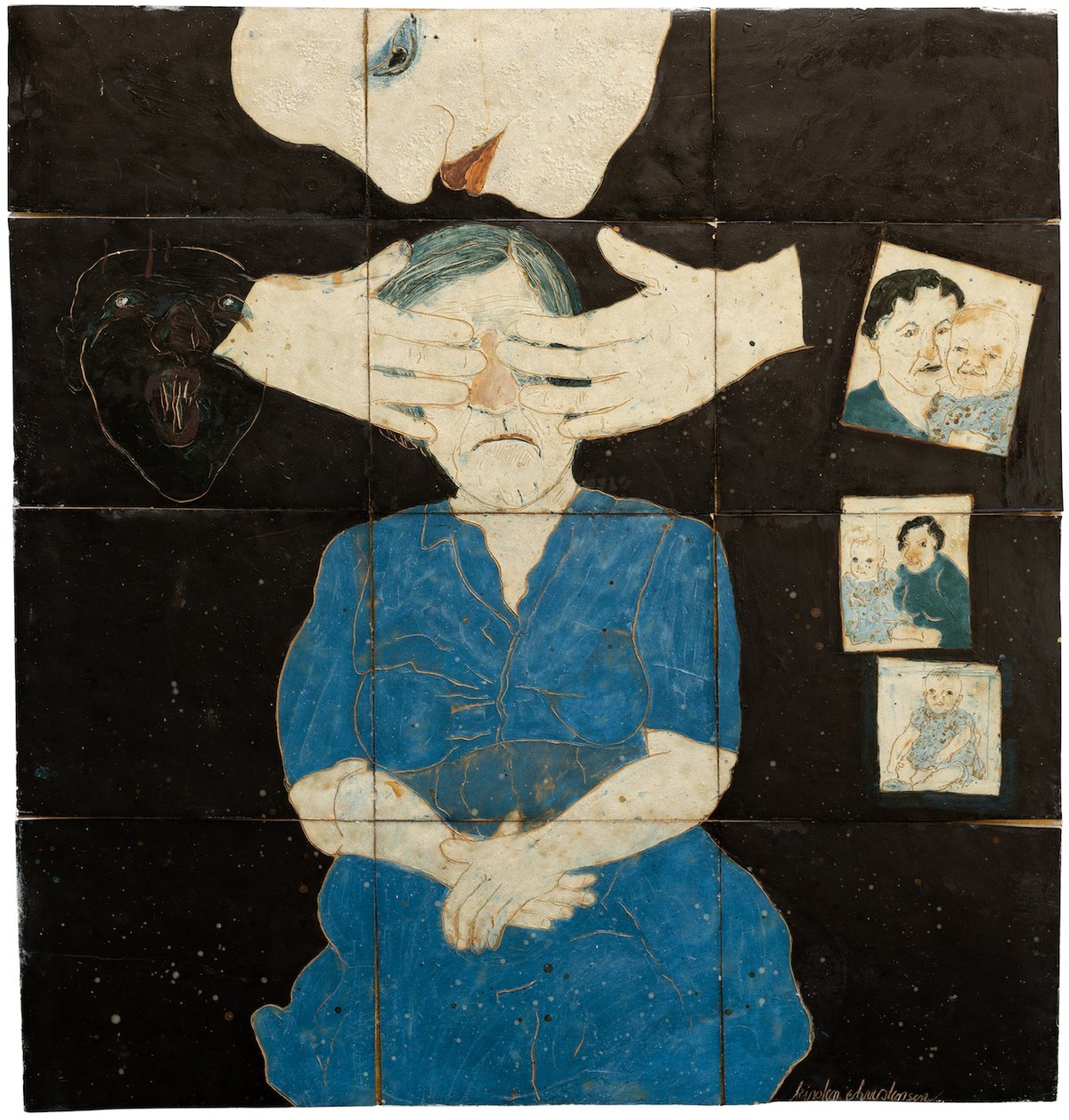 Denne type værker, hvor erindring og drømme mødes gennem udtryksfulde karikaturer, fantasifulde indskydelser og hemmelighedsfulde antydninger, er skabt på baggrund af kunstnerens ’eget’ liv, og de skildrer et familiært persongalleri og dets relationer, sådan som hun har rekonstrueret dem i den kunstneriske proces, hvorved de flyttedes fra fotoalbummets statiske glemsel over til en reaktualiseret tilstedeværelse på de store keramiske flader.
