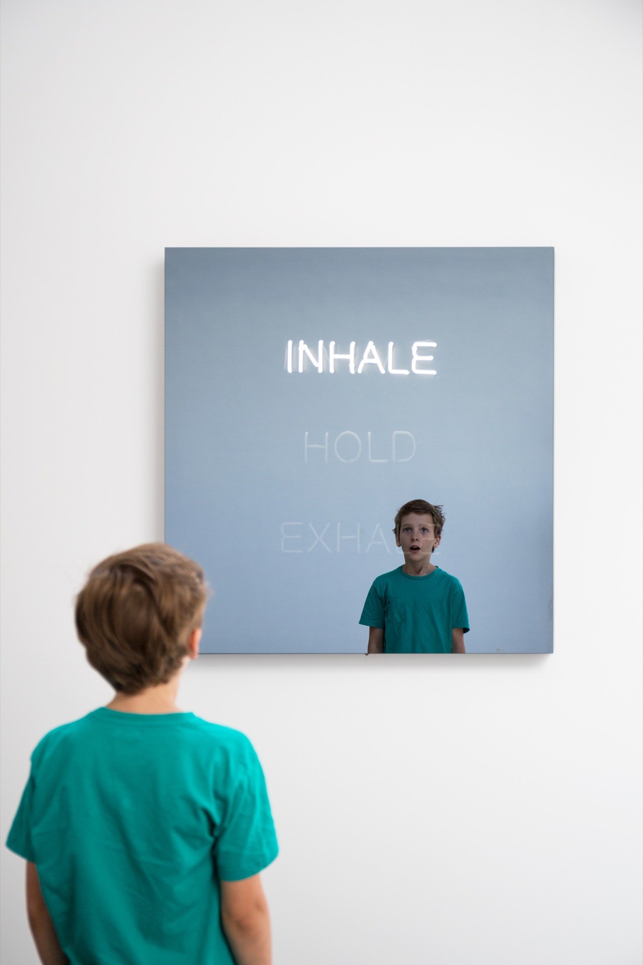 Særlig kontemplativt bliver det i udstillingens sidste del. I værket Almost Nothing (2008) svæver en hvid fjer i en glaskugle, sat i bevægelse af en lille motor. Det er et poetisk nærværsværk ala den ikoniske scene fra filmen American Beauty (1999), hvor en plastikpose svæver dansende i blæsten – som en synliggørelse og materialisering af det usynlige og immaterielle. Yderligere er der Third Eye (2014), som er en mørk tovejsspejlsøjle med reference til den buddhistiske tanke om et indre øje, der giver adgang til åndelige erkendelser. Man opdager, at stearinlyset ikke er en videoproduktion, men et rigtigt brændende lys placeret inde i søjlen. Man kan spejle sig og se sig selv med det tredje øje – lyset – i panden.