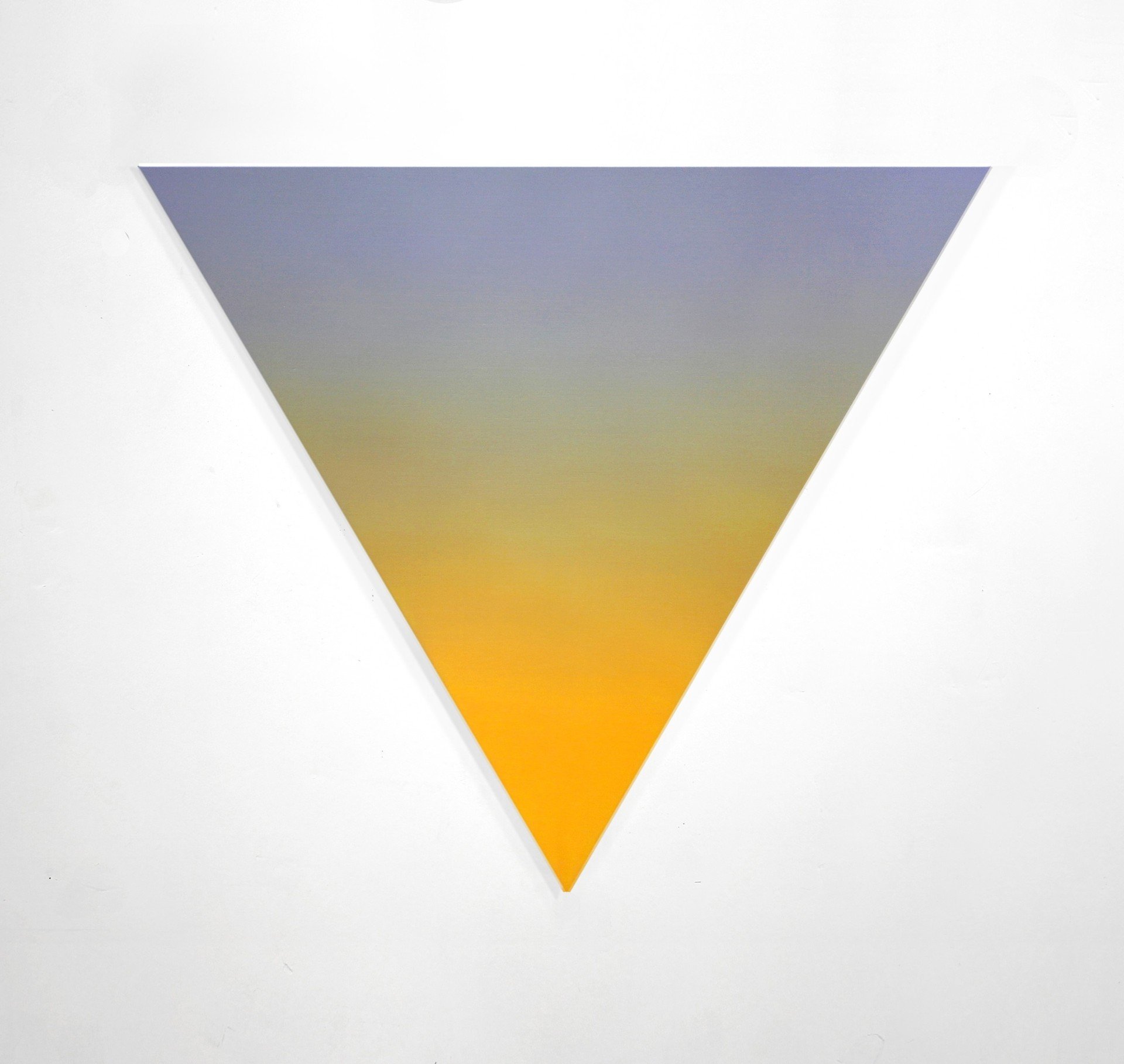 De nyere Gradient-billeder har fået en stor plads på denne udstilling, og udstillingstitlens omvendte pyramide støder man ind i som noget af det første i udstillingen. På en bagvæg, der umærkeligt graduerer fra blåt i bunden til rødt i toppen, hænger det trekantede lærred med en skrigorange spids nederst og et gradvist flow mod en violet tone i toppen.