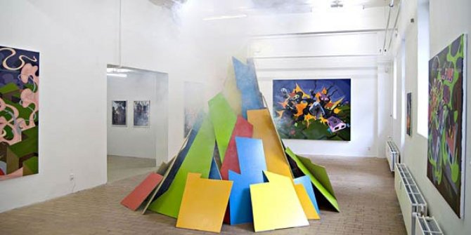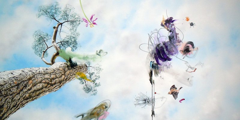 I sine malerier er perspektivet ofte usædvanligt; vi kigger op på en baggrund af skyer. Elementerne synes udsat for en stærk centrifugal eller centripetal kraft. Der er ingen mulighed for en tryg lineær aflæsning, og fragmenternes allegoriske betydning er gået af fløjten. Malerierne består af en række abstrakte tegn og en række aflæselige symboler, men de består i ligeså høj grad af opholdet mellem disse. Metoden er et sammenkog af teknikker fra præcis realisme til sjusket gestik.