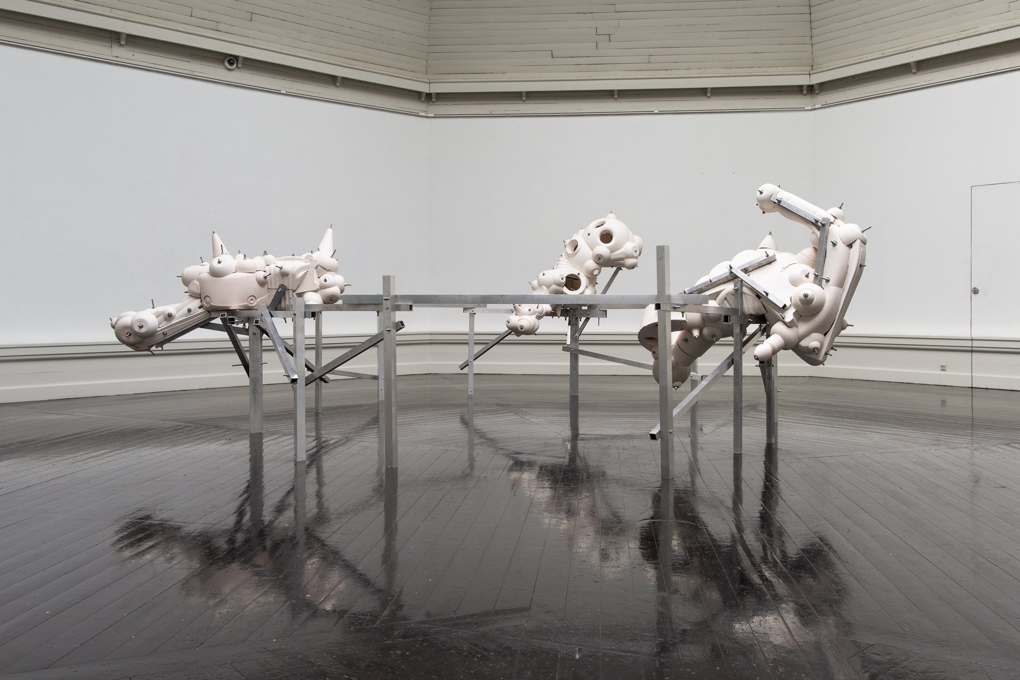 Billedhuggeren Bjørn Poulsen skaber skulpturer med en pågående, næsten aggressiv fysikalitet og vitalitet. Hans værker bevæger sig mellem det genkendelige og det fremmede og pirrer sanserne med deres uforudsigelige former. Poulsen arbejder ofte med brudte helheder og transformerer readymades ved at destruere dem og sammensætte dem på nye, dristige måder. Skulpturerne præges af knopskydninger, udvækster og huller, mens brugen af farvet plexiglas foran dem vrider og omformer formerne, hvilket giver dem en fremmedgørende, næsten uhyggelig karakter.