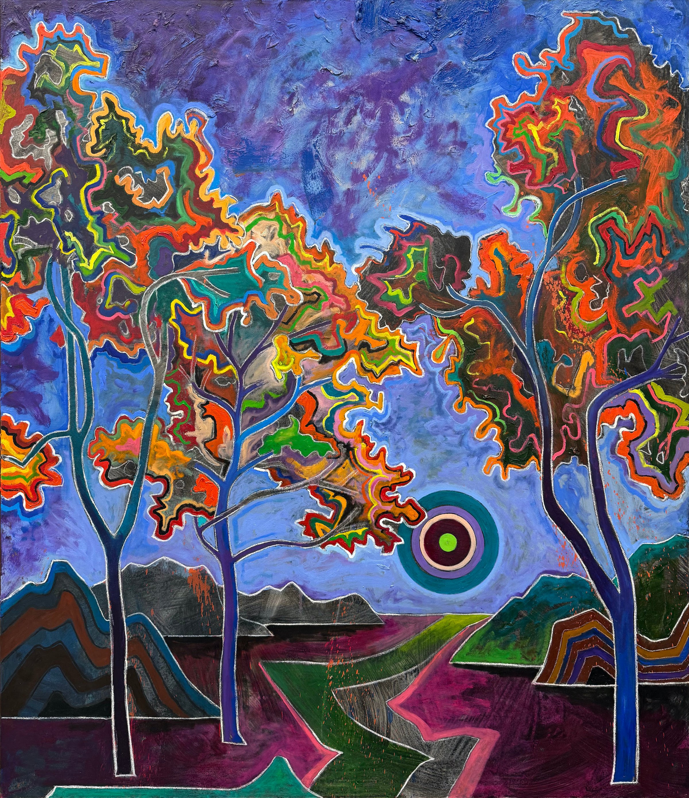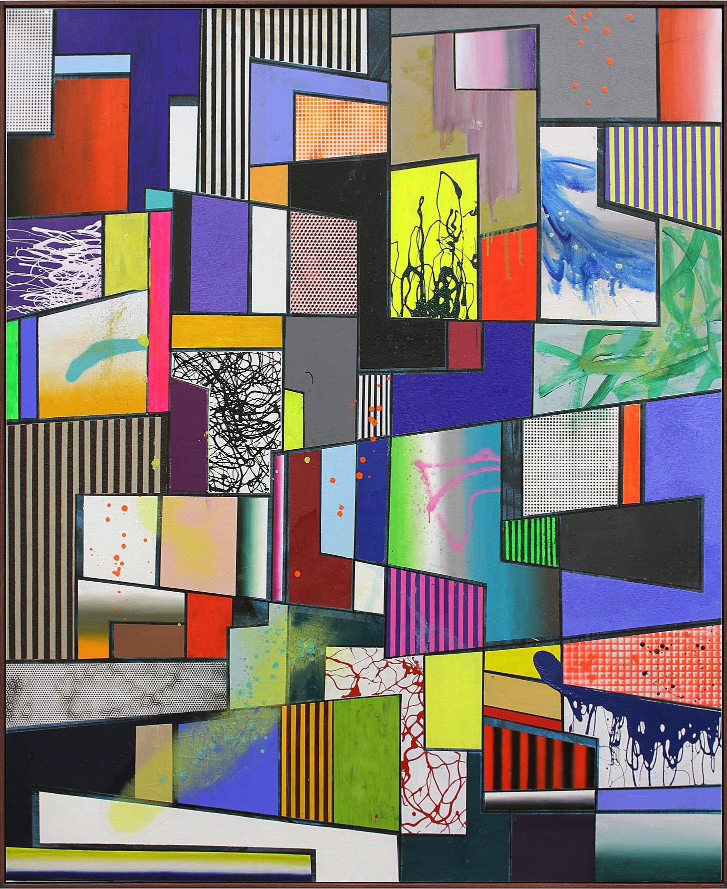 With his artistic roots in 20th century art history, Achenbach composes his own aesthetic symphony of the known isms framed in a fresh postmodern perspective. Achenbach’s creative process lends itself to the world of musical composition where the multiplicity of violent clashing of colors and shapes emphasizes the shift of tonality, thereby conjuring a materiality of sound.