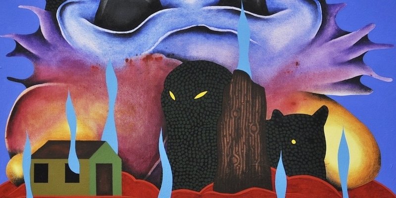 Med afsæt i graffitien arbejder Frodo Mikkelsen med motiver som kranier, kronhjorte og kunstnerens alter ego – den ensomme cowboy.