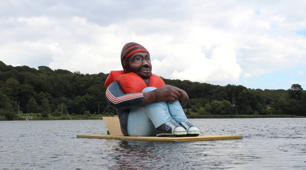 Performance: varighed 15 minutter. Styrofoam, A1, lakmaling, flint, spejl, LED-skærm. Foto: Birk Thomassen.