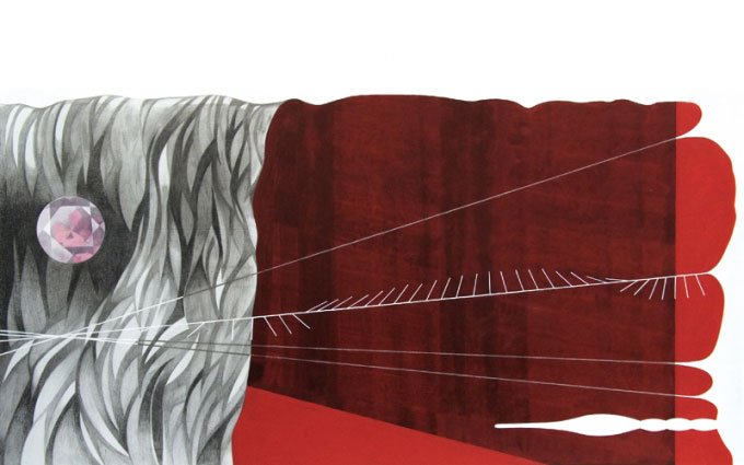 Det handler om linie, dybde, flade og farve. Geometri og perspektiv inddrages til at skabe illusionen af komplekse rum, hvor genkendelige delelementer, løsrevne fra sine oprindelige former, enten morphes sammen til nye konstellationer eller nedbrydes. Hun anvender enkle, formelle greb, hvor der levnes plads til intuition og pludselige indskydelser.